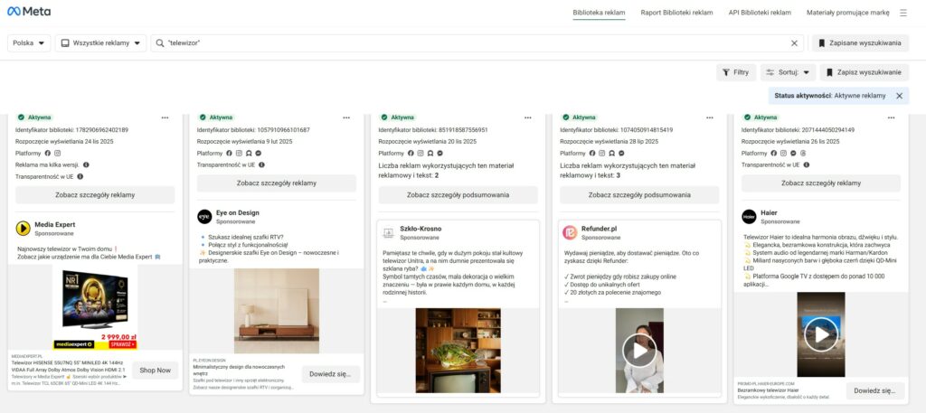 Biblioteka reklam to całkowicie darmowe narzędzie, które pozwala Ci podejrzeć, jakie reklamy emituje Twoja konkurencja.