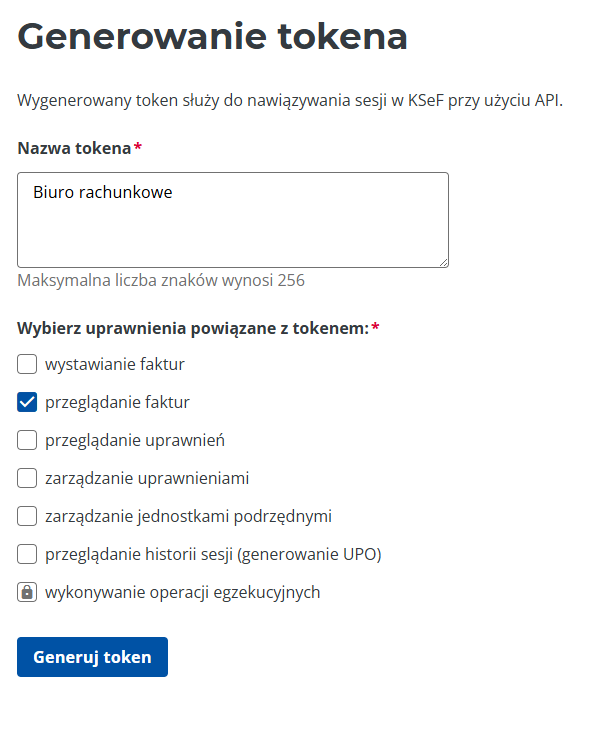 - Udostępnij wygenerowany token swojemu biuru rachunkowemu.