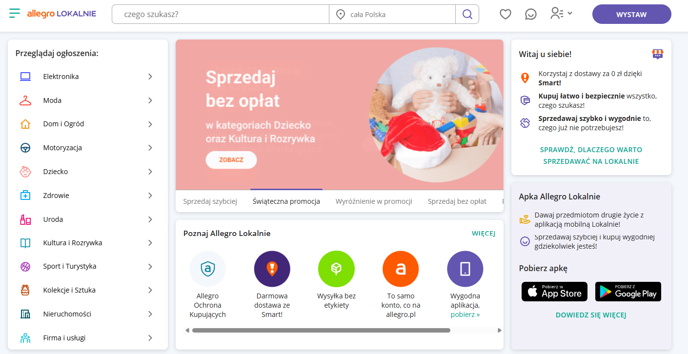 Facebook Marketplace to jeden z największych kanałów sprzedaży lokalnej w Polsce. Nie wymaga zakładania konta sprzedawcy ani opłat za wystawienie ofert, dzięki czemu jest dobrym sposobem na szybkie dotarcie do nowych klientów.