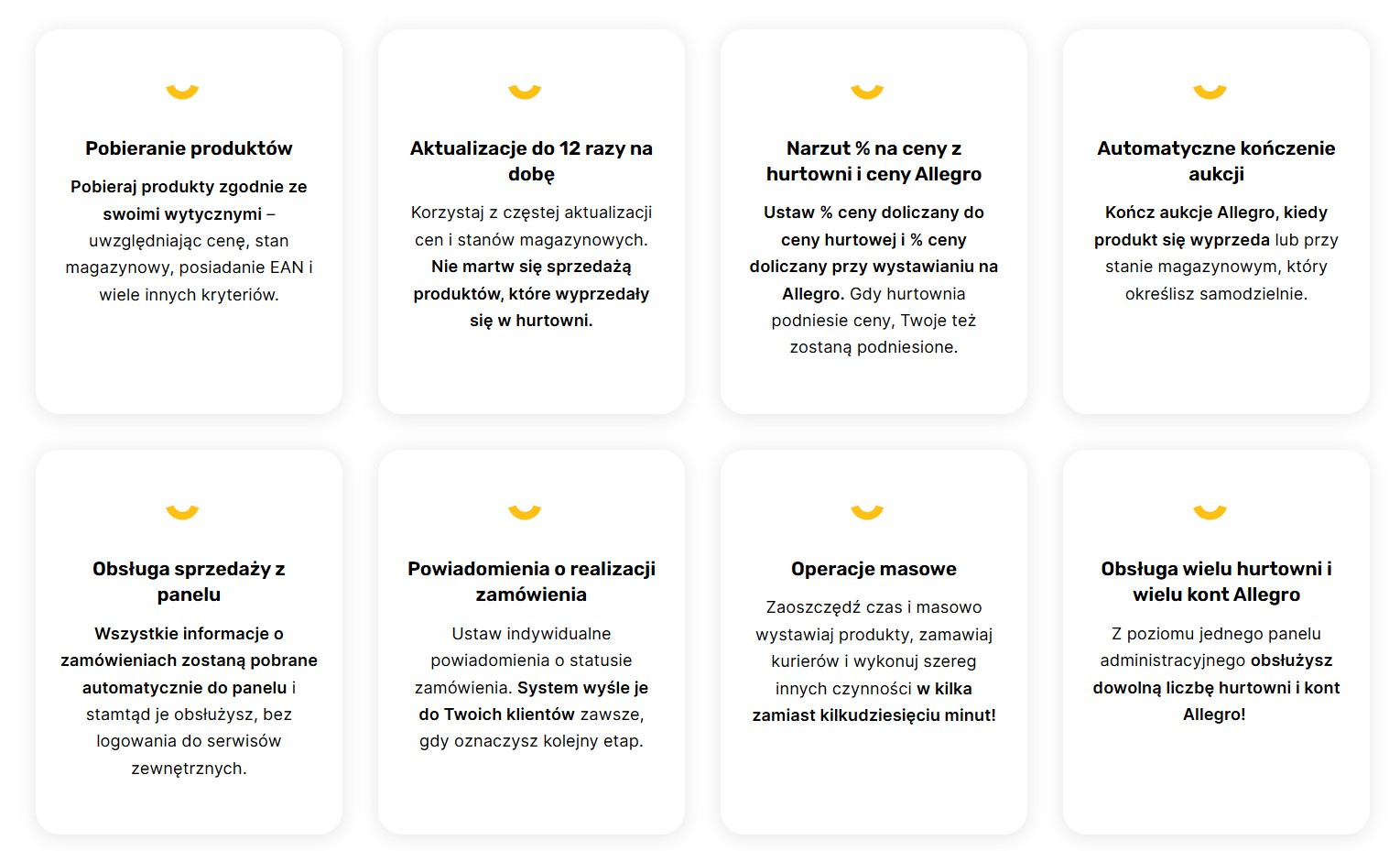 • obsługę wielu hurtowni i wielu kont Allegro z jednego panelu,