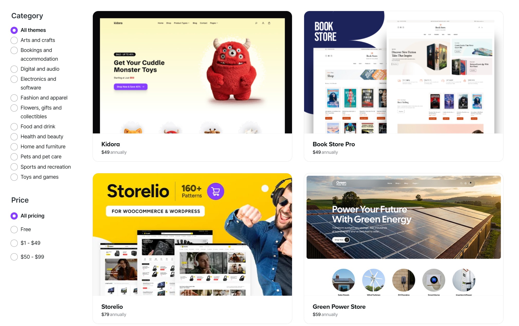 WooCommerce oferuje praktycznie nieograniczone możliwości wizualne. Możesz wybrać jeden z gotowych szablonów (większość z nich jest płatna, ale część jest darmowa), ale możesz także edytować kod, budować własne motywy, korzystać z page builderów i tworzyć całkowicie niestandardowe interfejsy.